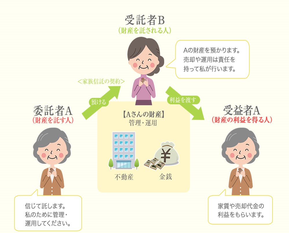 家族信託は「信頼できる家族に財産を託し、自分や家族のために管理してもらう」制度です。